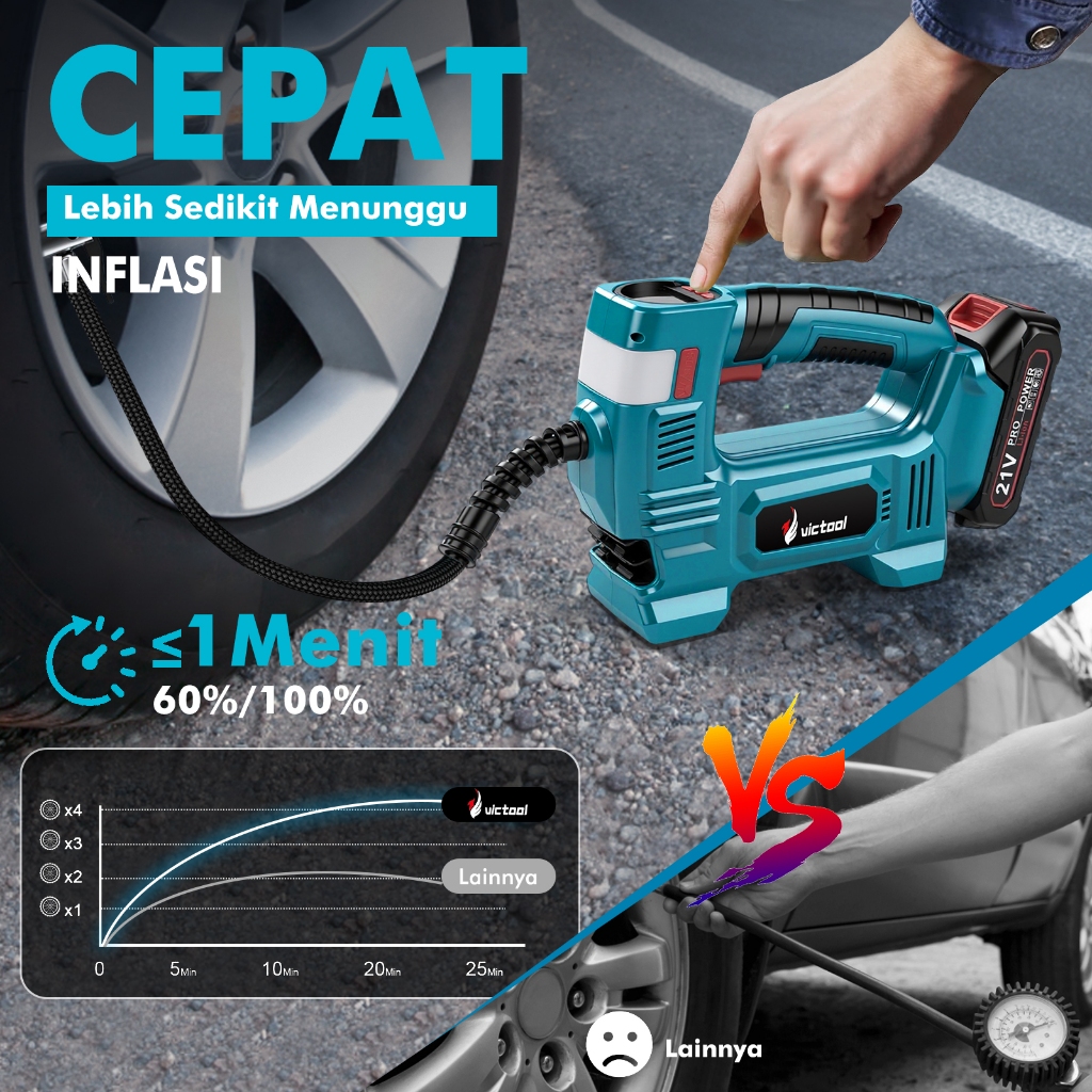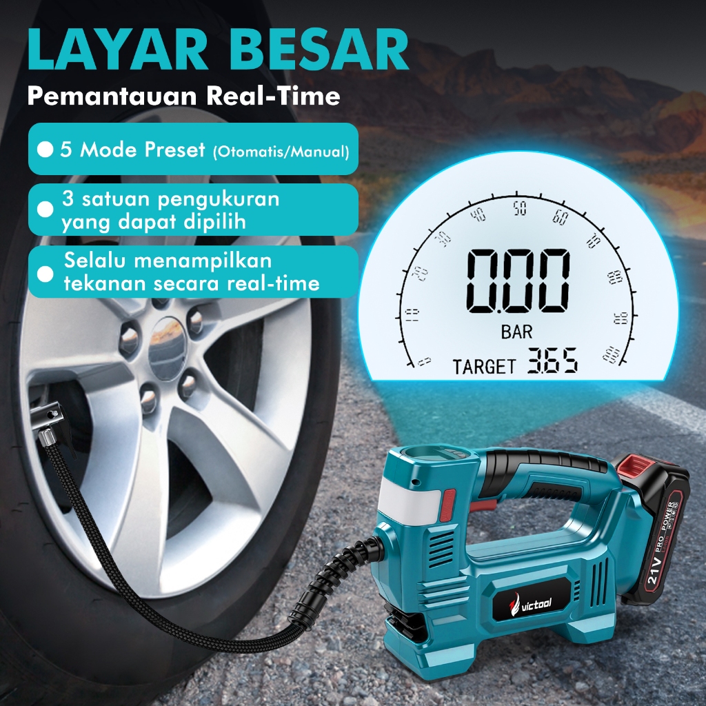 Victool 5000W pompa angin multifungsi pompa angin ban portabel cocok untuk sepeda motor, truk, bulat, sepeda, kendaraan