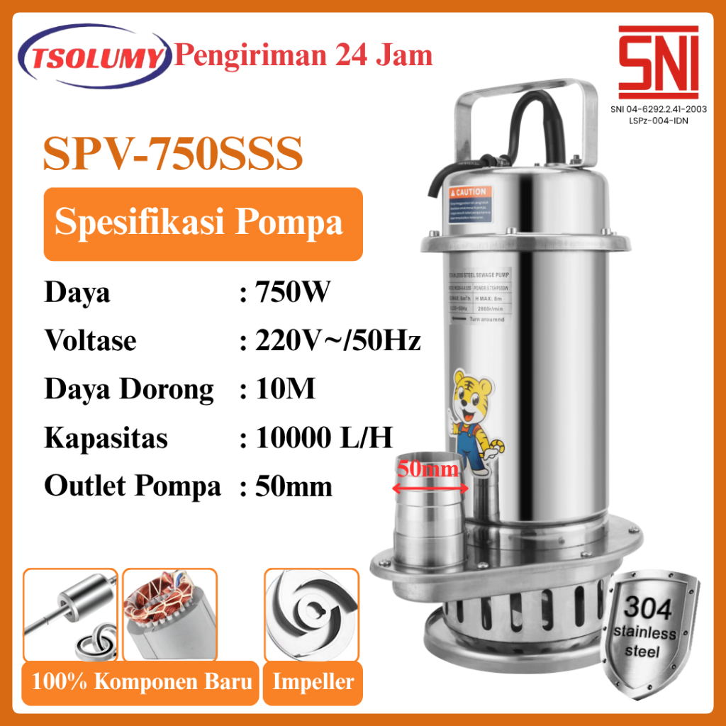 [PROMO] Pompa Celup Air Kotor SPV750SSS Stainless Submersible 2Inch Pompa Air Laut Pompa Tamb