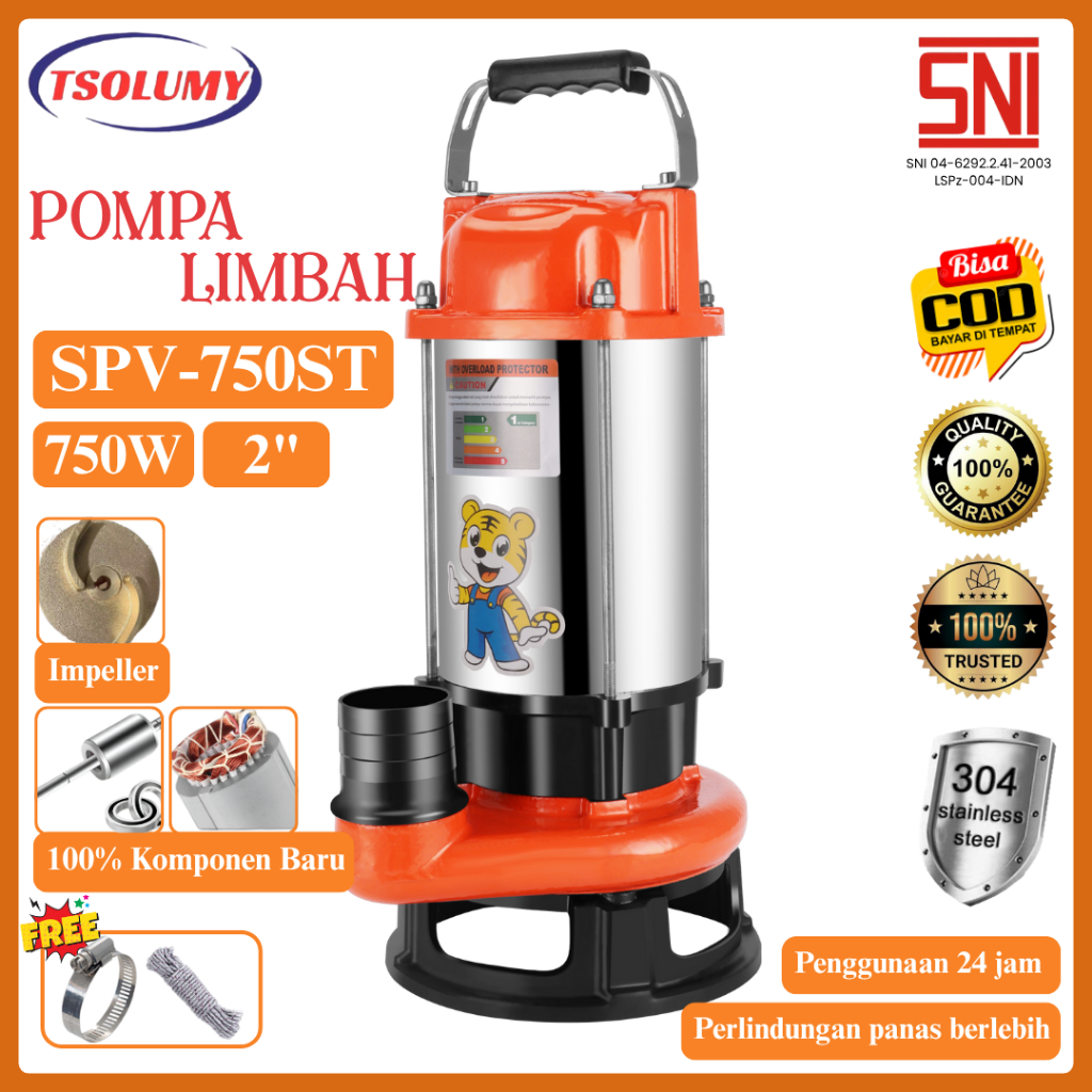 [PROMO] Pompa Celup Air Kotor SPV750ST 750W Stainless Submersible Pump 2 In Pompa Kolam lkan B