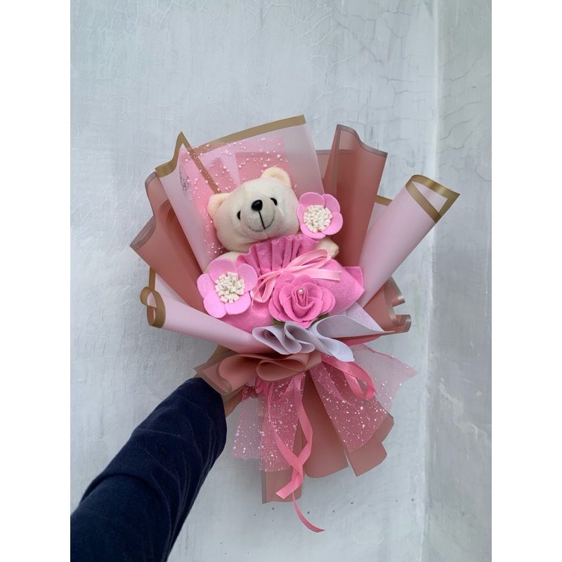 Buket Bunga Pink Bear Estetik Dan Lembut