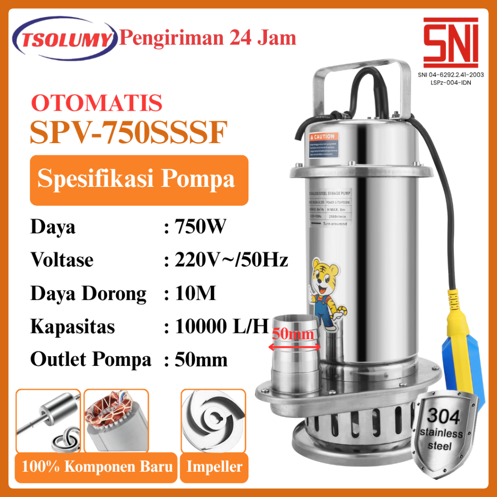 [PROMO] Pompa Celup Air Kotor Otomatis SPV750SSSF Pompa Full Stainless Pompa Air Laut Tahan Ko