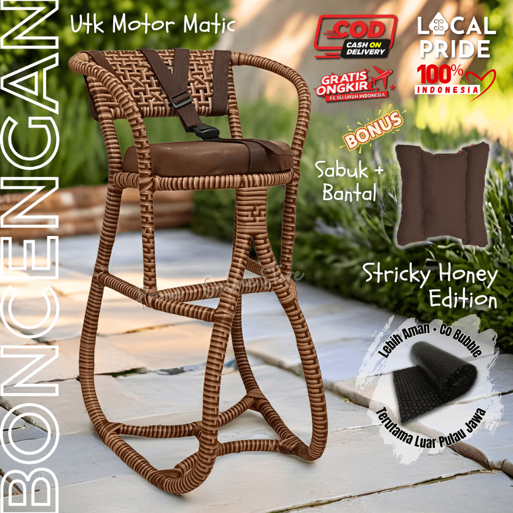 FREE BANTAL + SABUK} Kursi Bonceng Anak Full Anyam Asli - Jok Motor Matic Bangku Rotan Anyaman Sintetis Metik / Tempat