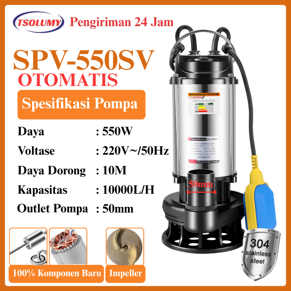 [PROMO] Pompa Celup Air Kotor Otomatis SPV550SVF 550W 2 Stainless Steel Submersible Sewage Mes