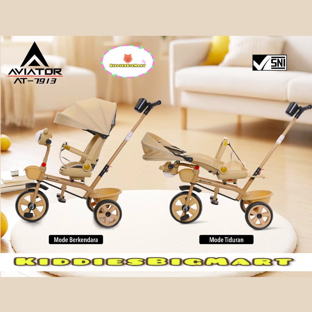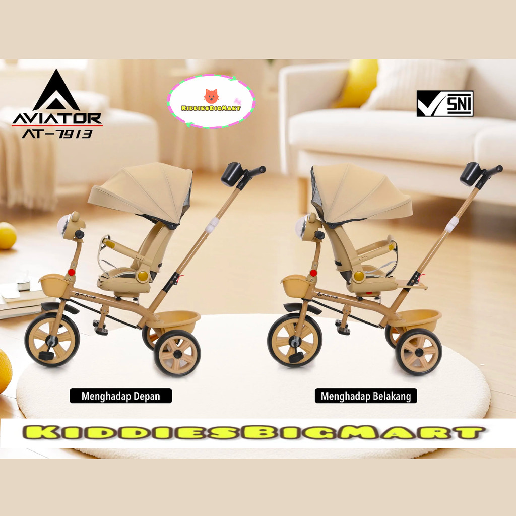 Sepeda Anak Roda 3 Tiga Tricycle Exotic AT 7913 Kursi Rebahan Bisa Hadap Depan Dan Belakang Ada Music Lampu