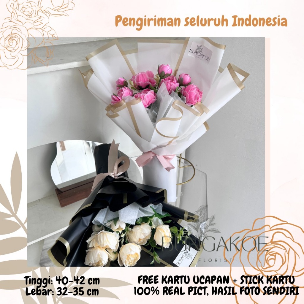 Buket Bunga Peony Artificial 5 Tangkai - Bunga Palsu Premium untuk Wisuda & Hadiah