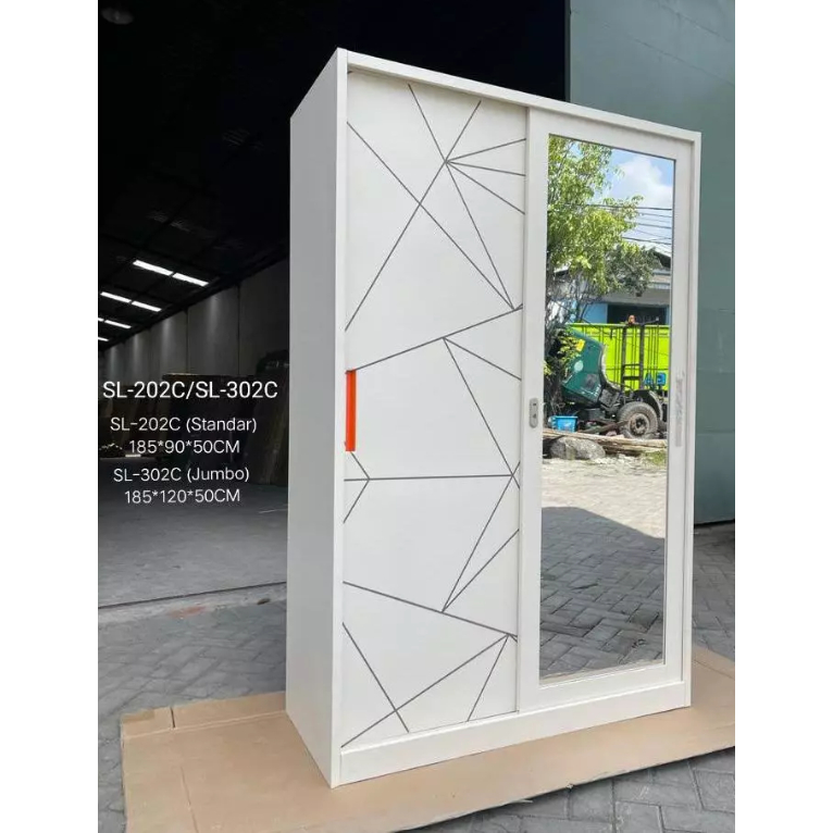 Lemari Baju Sliding Besi (PLAT TEBAL) - Lemari Baju Sliding - Almari Baju sliding - Lemari Baju 2 Pintu - Lemari baju Sliding kaca - Lemari Pakaian Besi Pintu Geser Murah
