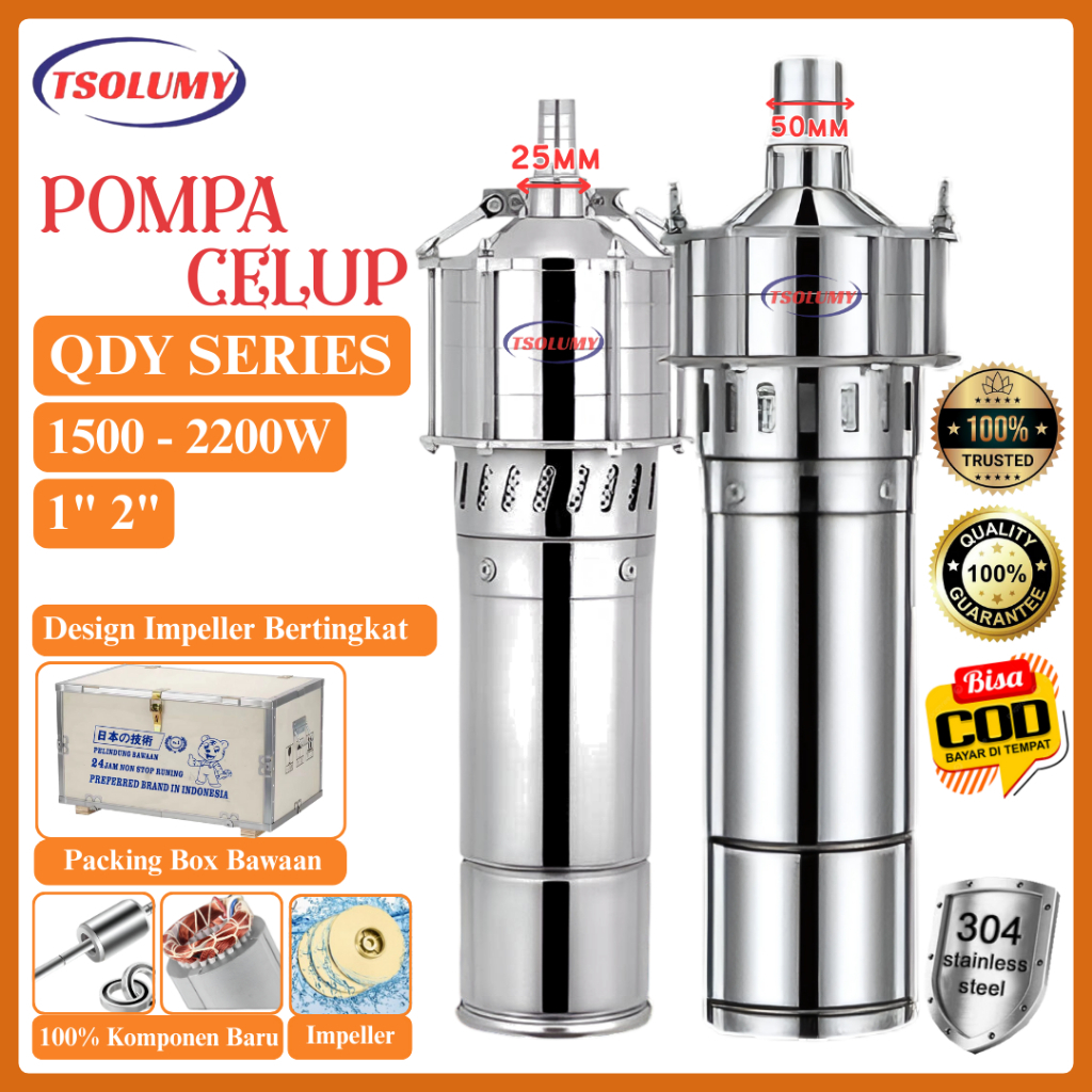 [PROMO] Pompa Celup Air Bersih 1Inch 2Inch QDY 220v Stainless Steel Aliran Kuat FREE Packing K