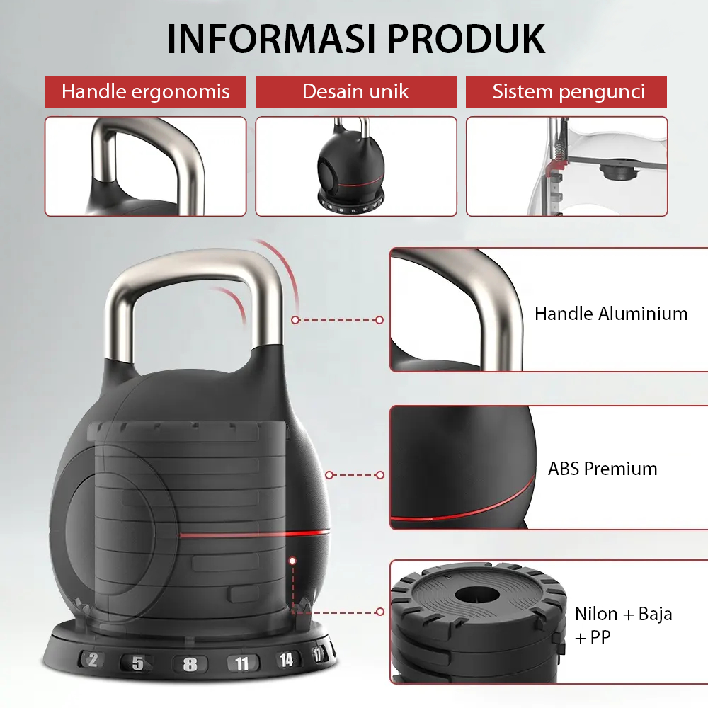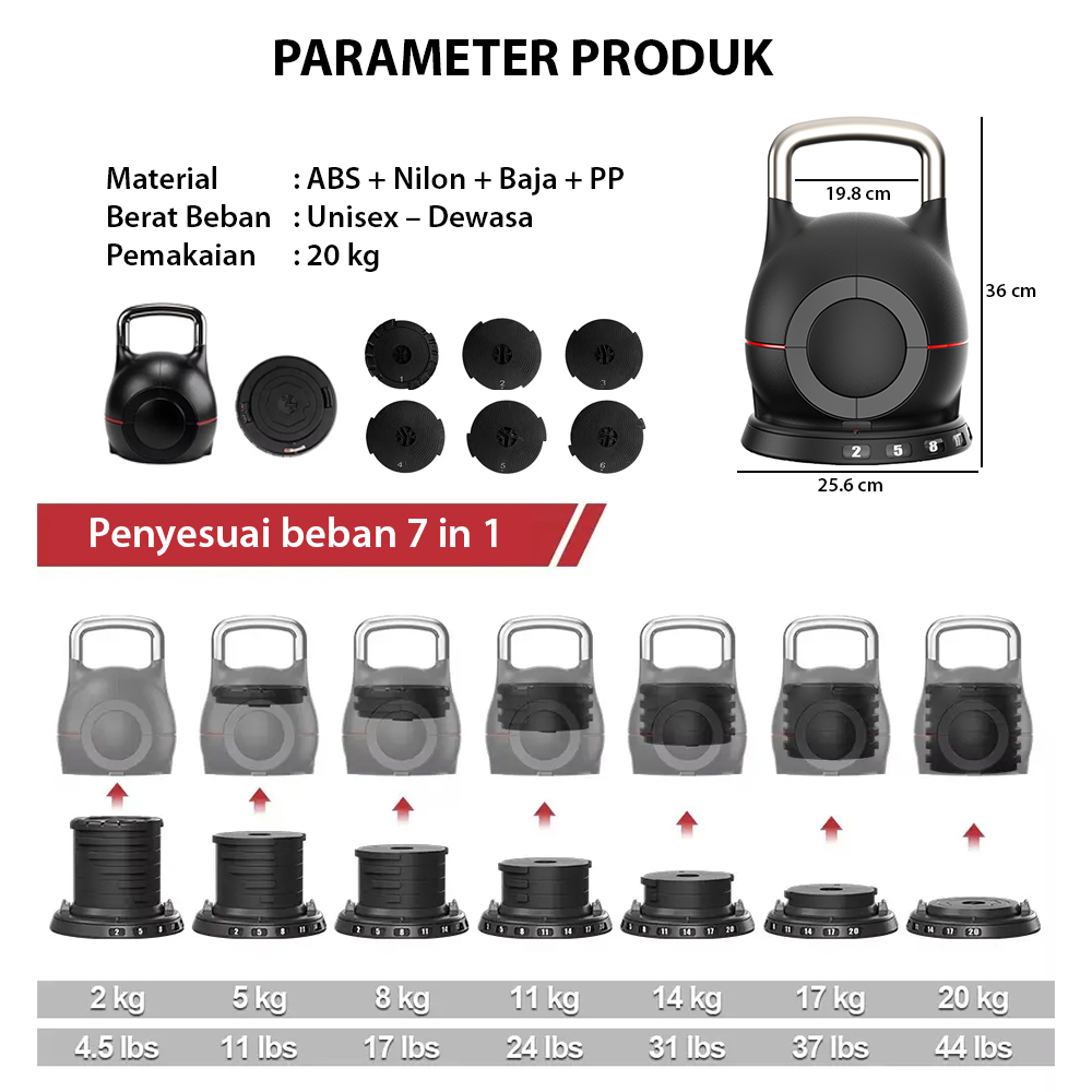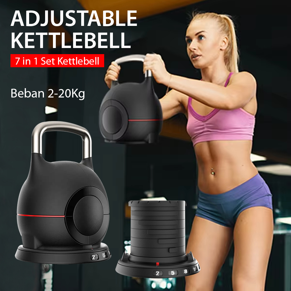 Adjustable Kettlebell 20 Kg 7 in 1 | Kettle Bell Gym | Dumbell Barbel Barbell Fitness | Alat Angkat Beban | Alat Fitness