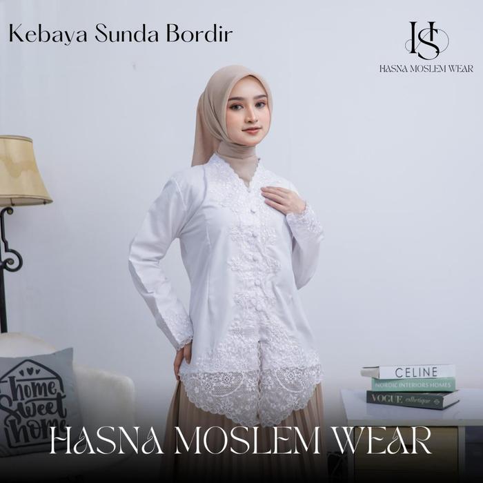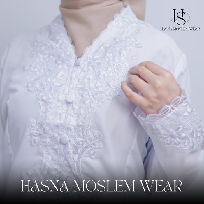 KEBAYA ENCIM BORDIR SENADA KATUN - MODEL DEWASA PANJANG PUTIH - PUTIH, S