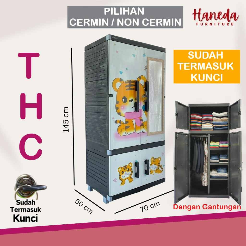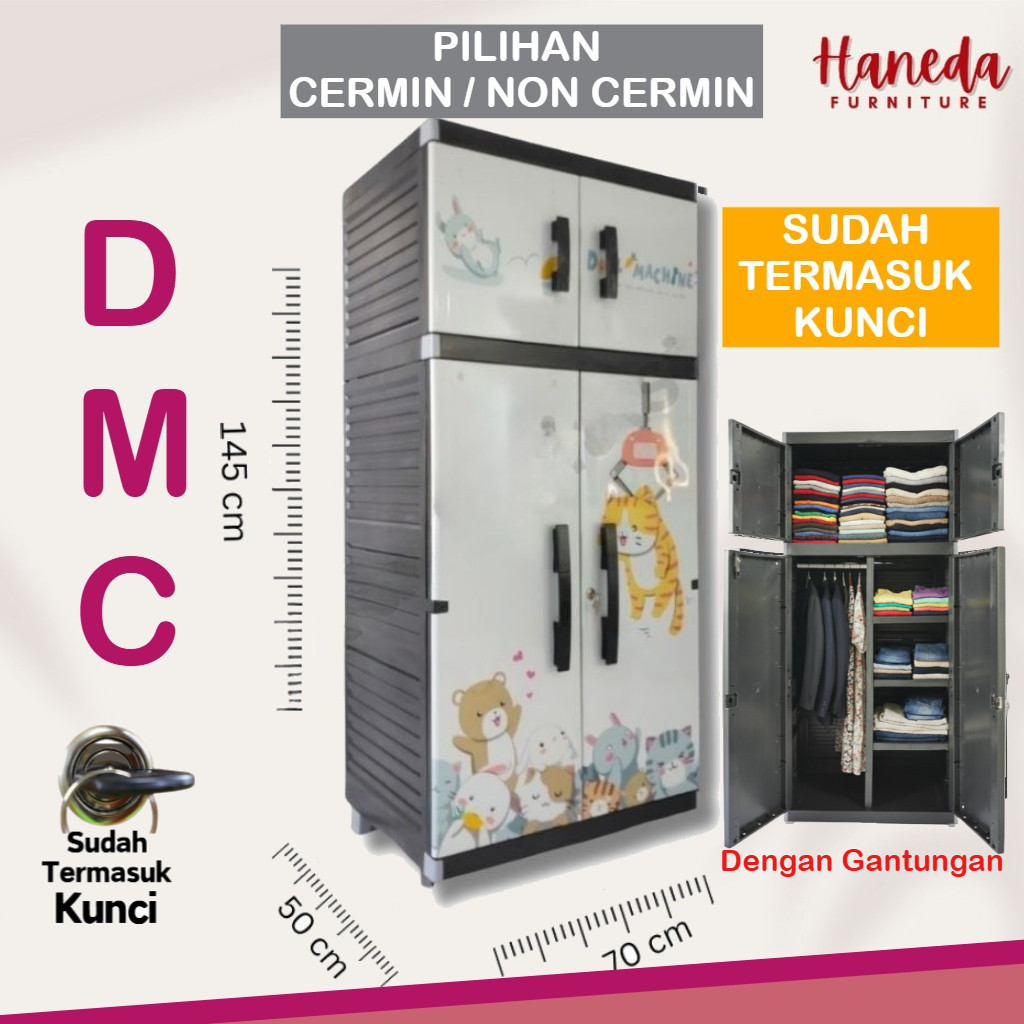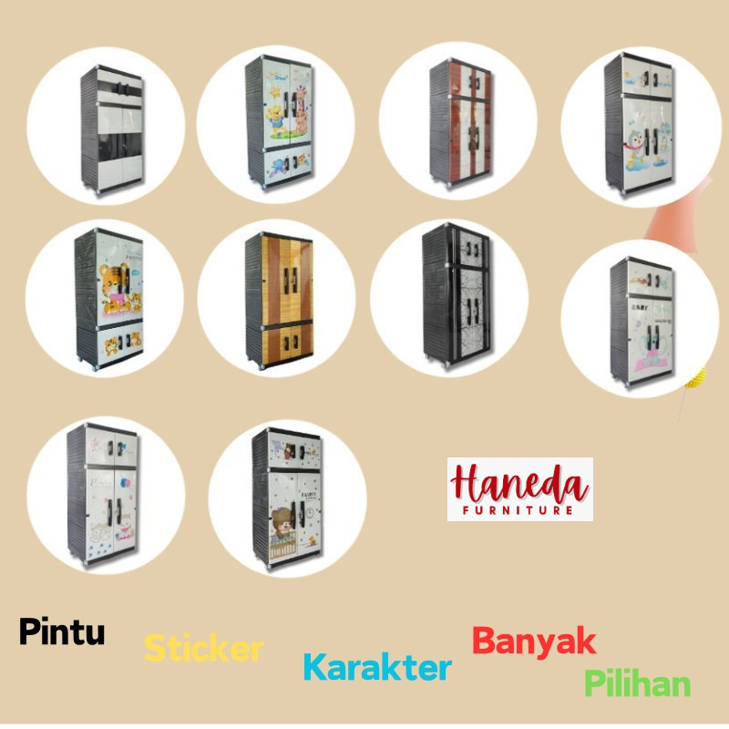 HANEDA Lemari Pakaian Plastik MR PLAS STICKER STANDAR Lemari GANTUNGAN Lemari Susun Cermin Kunci
