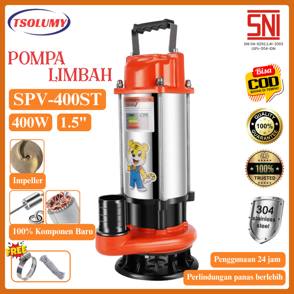 [PROMO] Pompa Celup Air Kotor SPV400ST Stainless Submersible Pump 1.5inch Pompa lkan Banjir