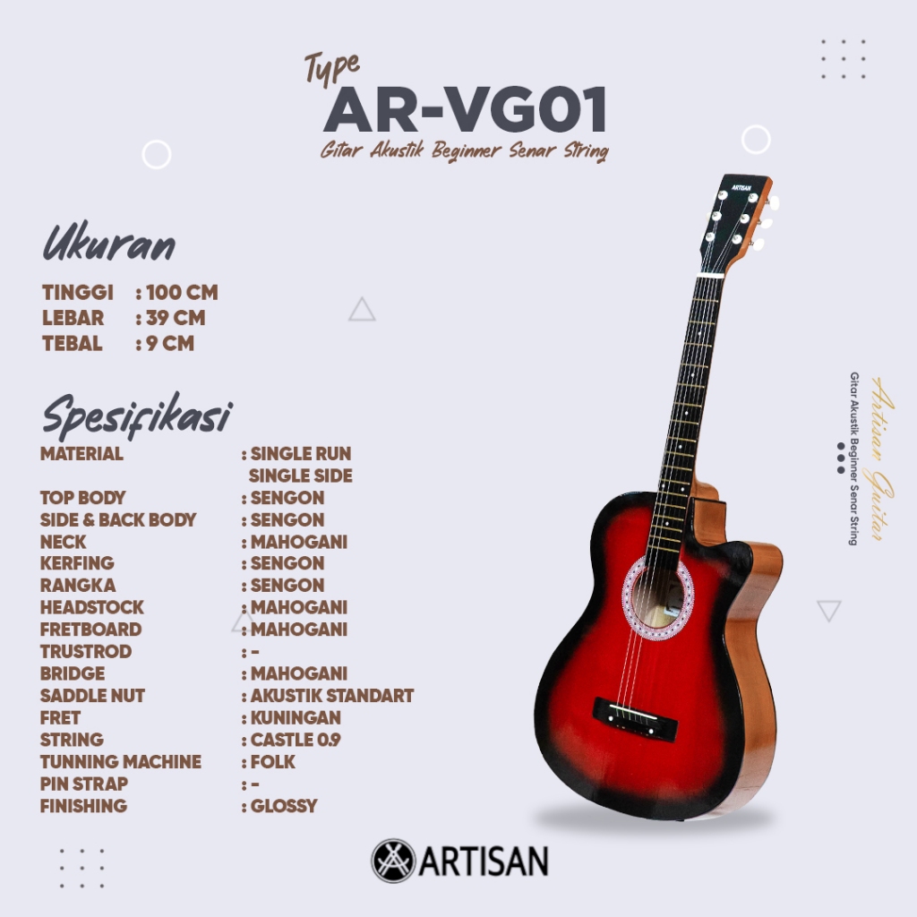 ARTISAN Gitar Akustik Beginner AR - VG01 Senar String Guitar Murah Terjangkau