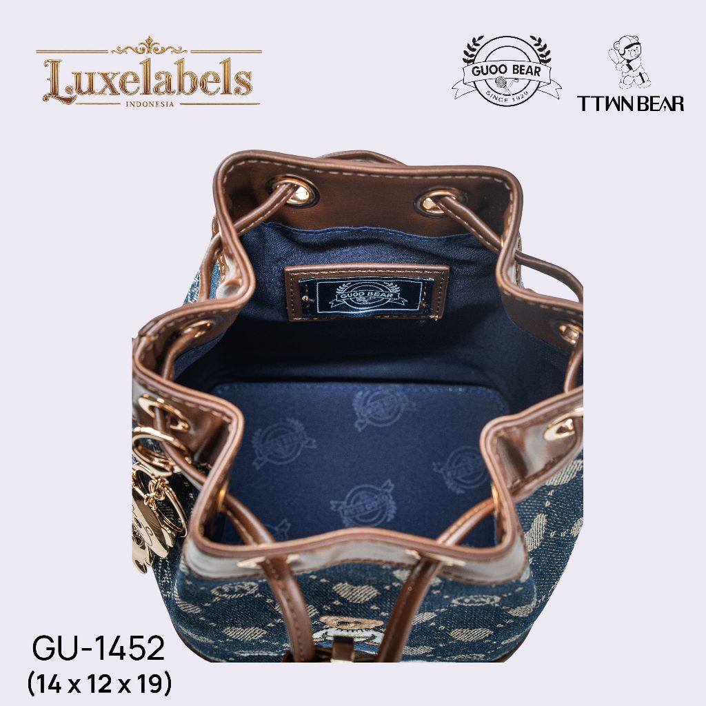 Luxelabels - GUOO Bear Tas Bucket Serut Wanita Ukuran S Tas Selempang Motif Beruang