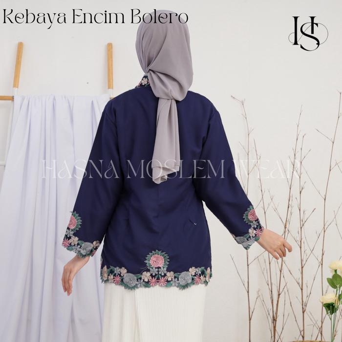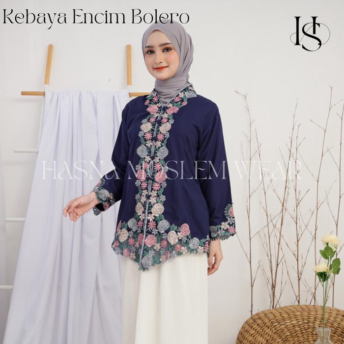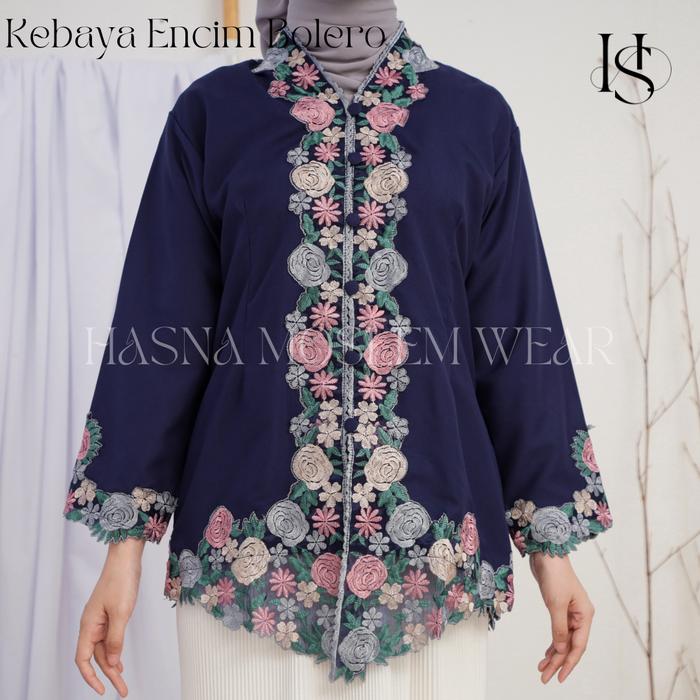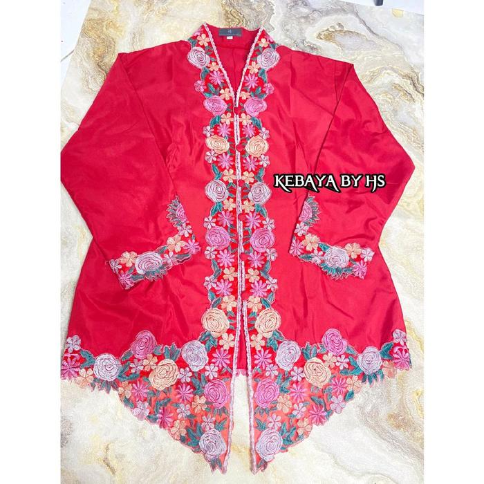HASNA - ATASAN KEBAYA ENCIM BORDIR WARNA MOTIF BUNGA LENGAN 7/8 KATUN MIKRO PREMIUM - MERAH, S