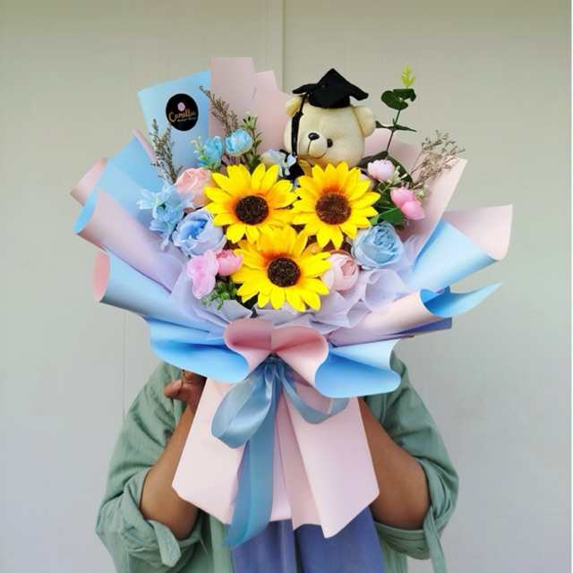 Hand Bouquet Sunflower Premium | Buket Bunga Matahari Artificial | Hadiah Wisuda Graduation Bunga Palsu SIAP KIRIM