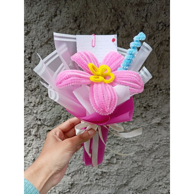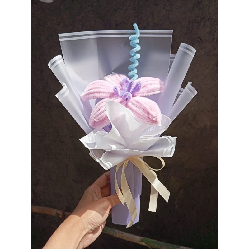 Buket Bunga Kawat Bulu LILI Gratis Kartu Ucapan
