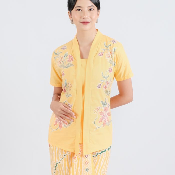 KEBAYA BATIK ENCIM MALIA LENGAN PENDEK MERADELIMA KATUN KUNING - XS