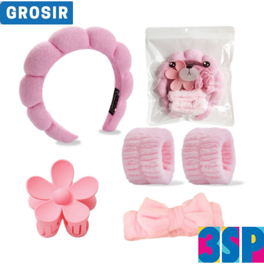 3SP | AC410 Paket Set Jepit Rambut BanbiayaWanita Bando Busa Perempuan Jedai Bunga Aksesoris Rambut