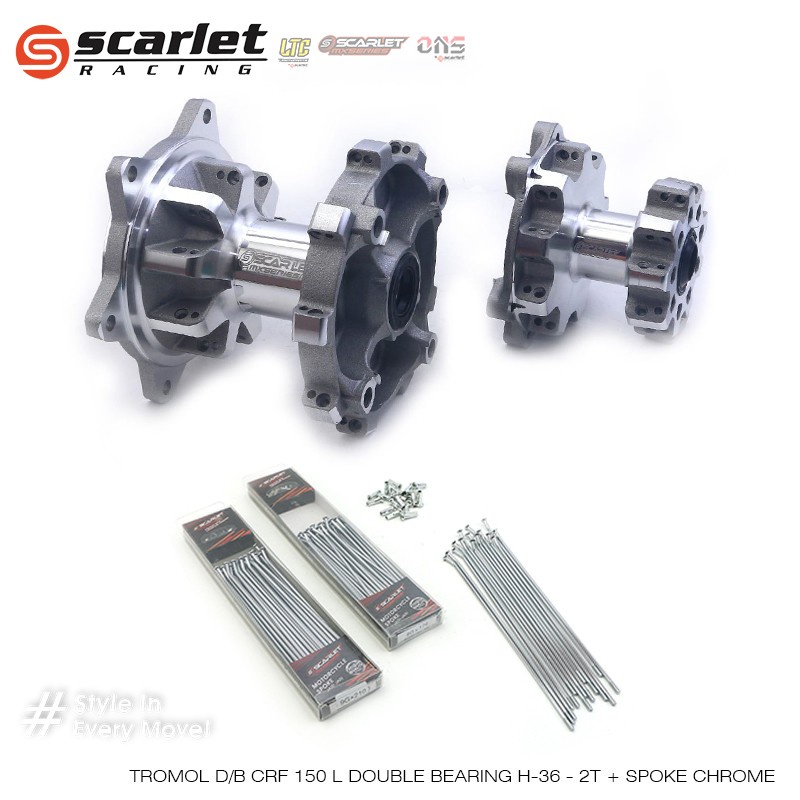 Scarlet Racing - Tromol Trombol Hub Trail Depan Belakang Set 2 Tone CRF 36 Hole Double Bearing + Jari Jari Chrome R 17