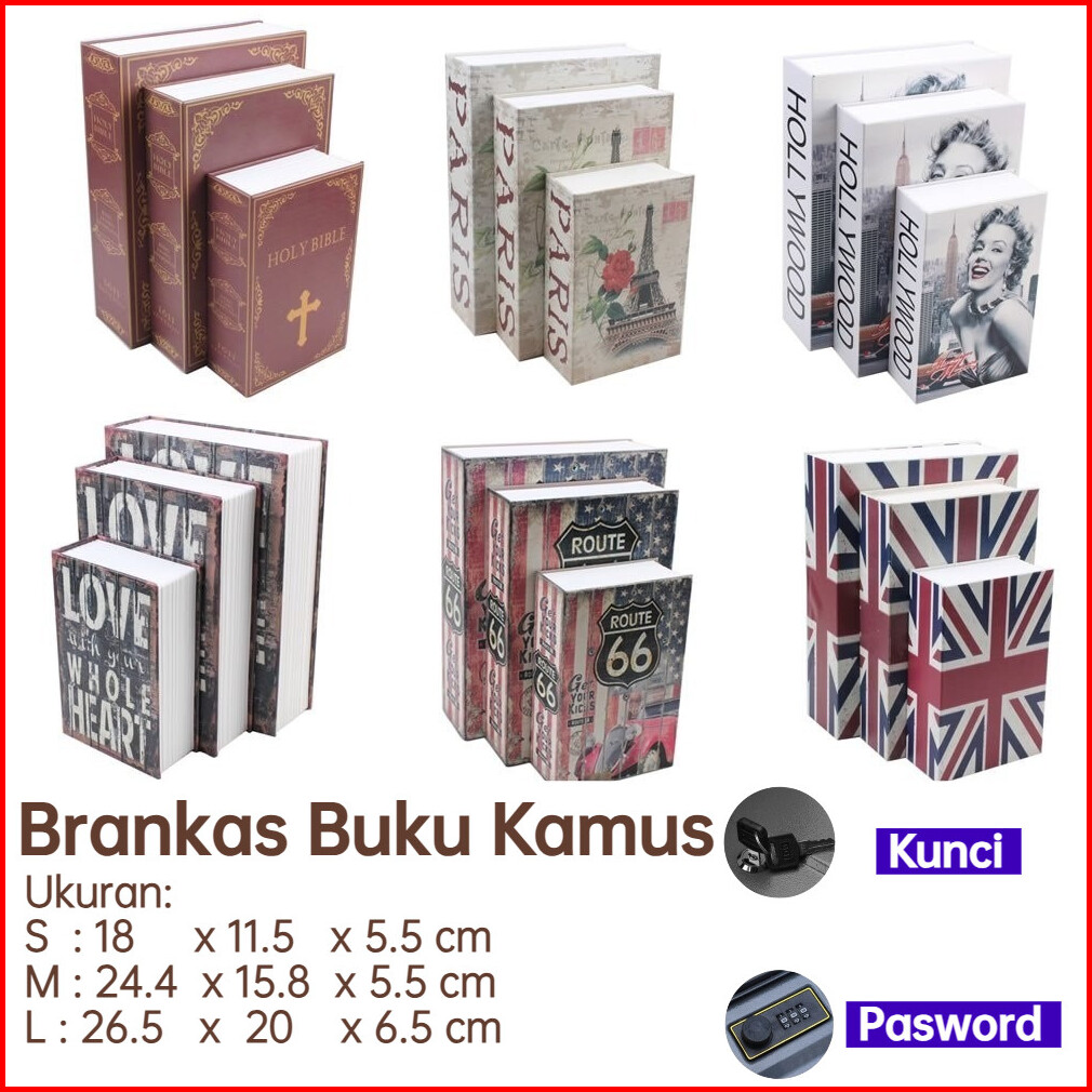 Brankas Mini Kotak Model Bentuk Buku Novel Brangkas Mini Buku Kamus Kotak Penyimpanan Rahasia -