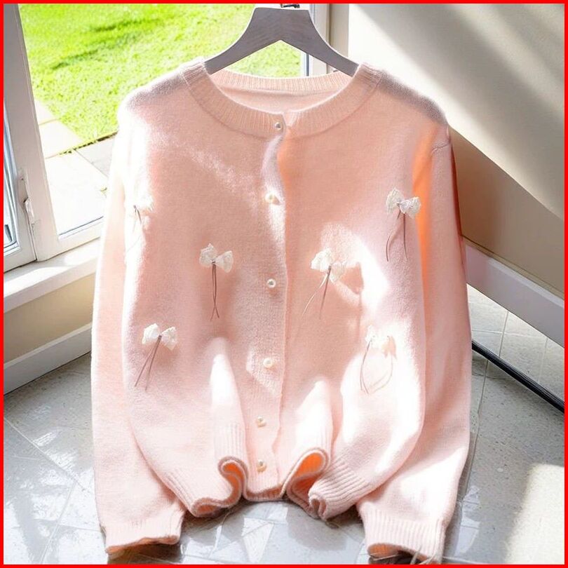Ajw Cardigan Rajut Motif Timbul 3d Pita Knitting Premium Wct Atasan Wanita Korea Style Bunga Lily 3d Timbul Knitwear Ter