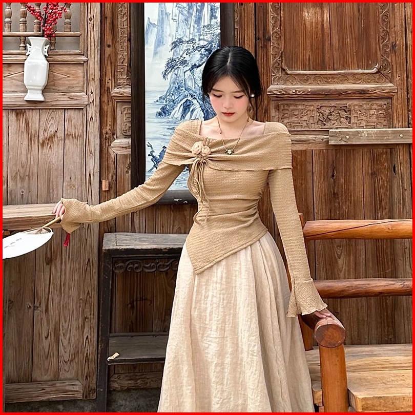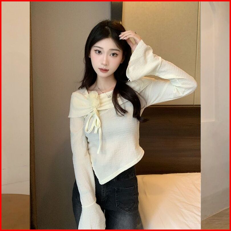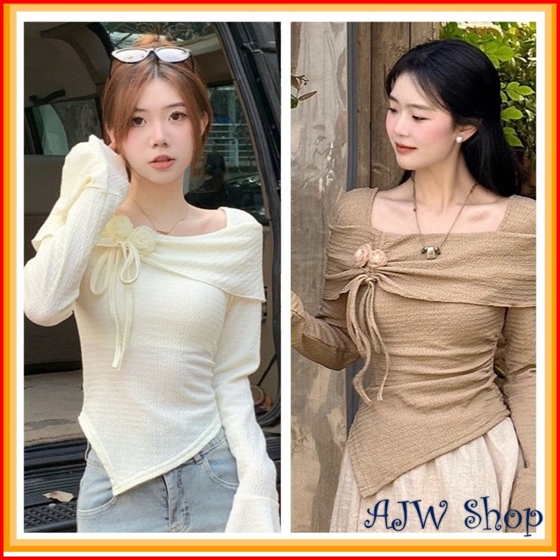 Ajw Atasan Wanita Ribbon Top Lengan Panjang Rqt Pakaian Wanita Rajut Ribbon Lengan Panjang Knit Premium Korean Style Ata