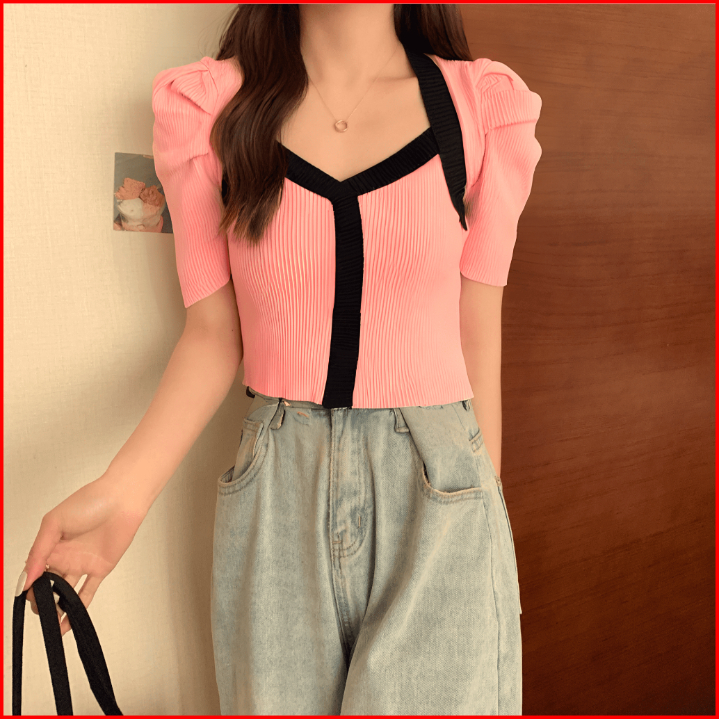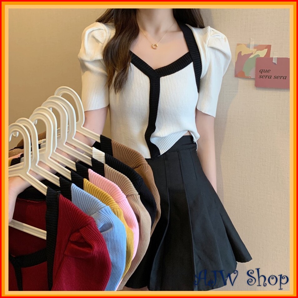 Ajw Atasan Wanita Two Way Lengan Puffy Balon Rajut Premium Hcf Atasan Rajut Import Wanita Two Way Vneck Lengan Puffy Kni