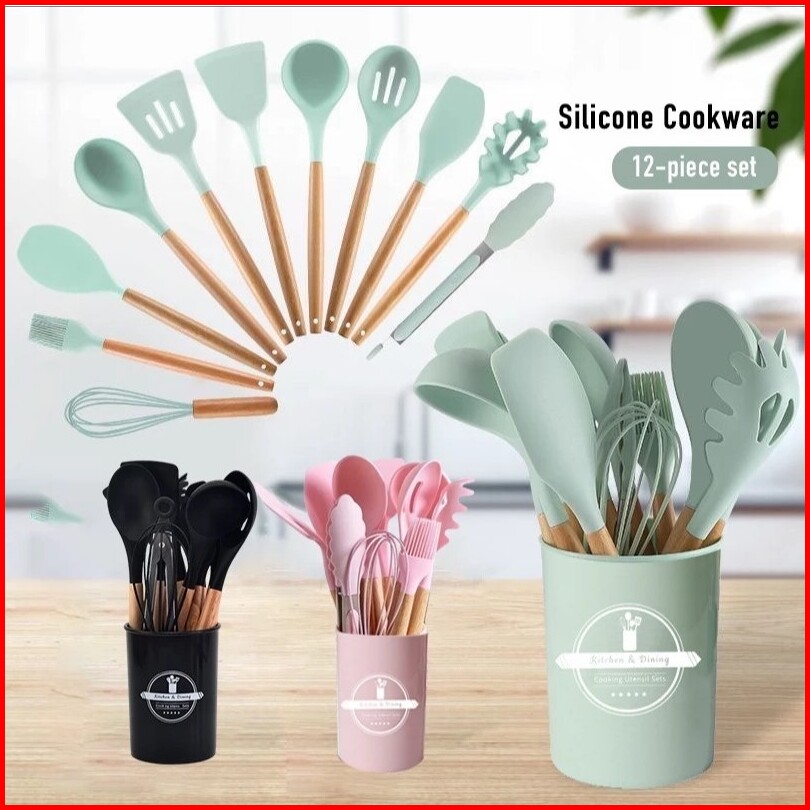 Silikon Spatula Alat Masak Set 12pcs Spatula Steak Clip Set Oil Brush Kitchen Cooking