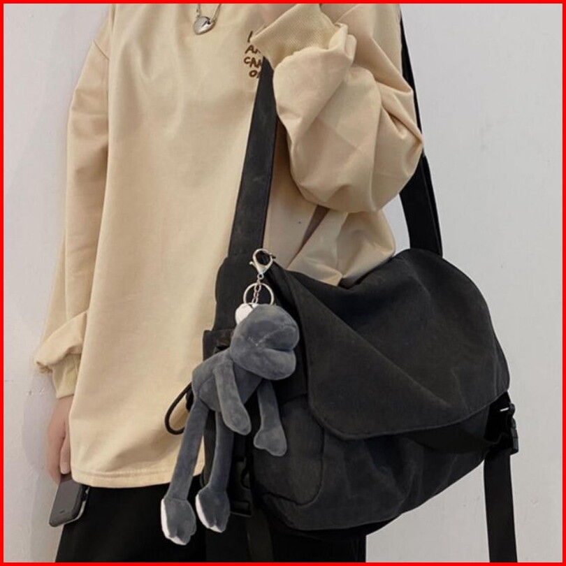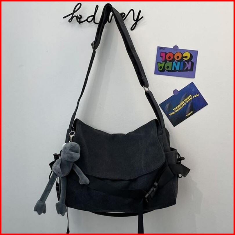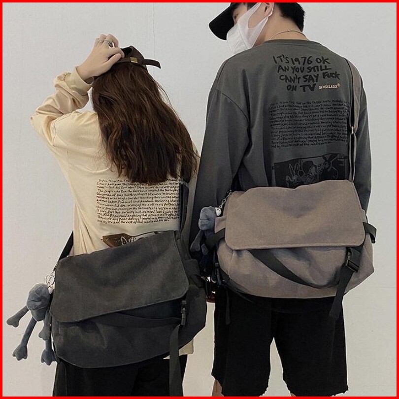 Slingbag Cowok Mahasiswa Tas Kanvas Jepang Universal Klasik Minimalis Santai Shoulder Bag