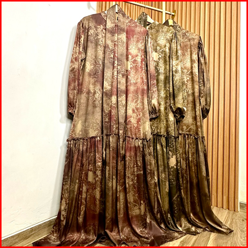 Candy Outfitku - Haruka Set Hijab Segiempat Belt Gamis Silk Sutra Premium