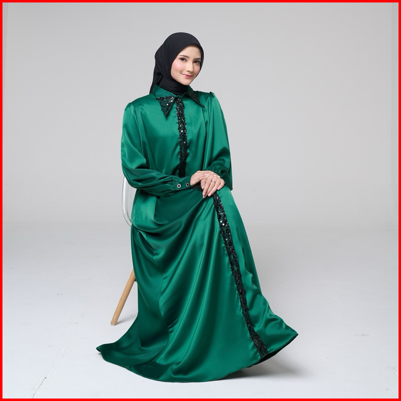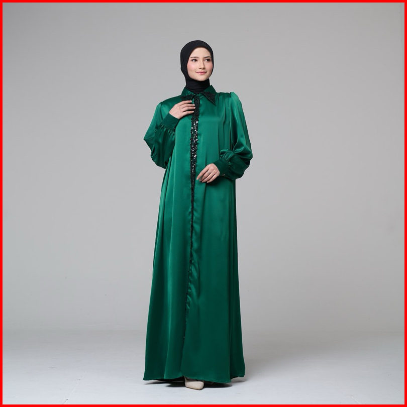 Candy Outfitku - Zahra Dress Tanpa Hijab Gamis Lebaran Bahan Bamboo Silk Premium Mix Tulle Sequin Mewah