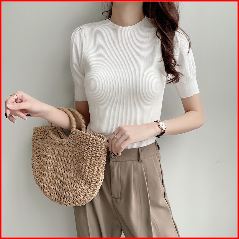 Ajw Atasan Turtleneck Rajut Wanita Korean Style Lengan Pendek Import Premium Ui Atasan Lengan Pendek Rajut Import Atasan