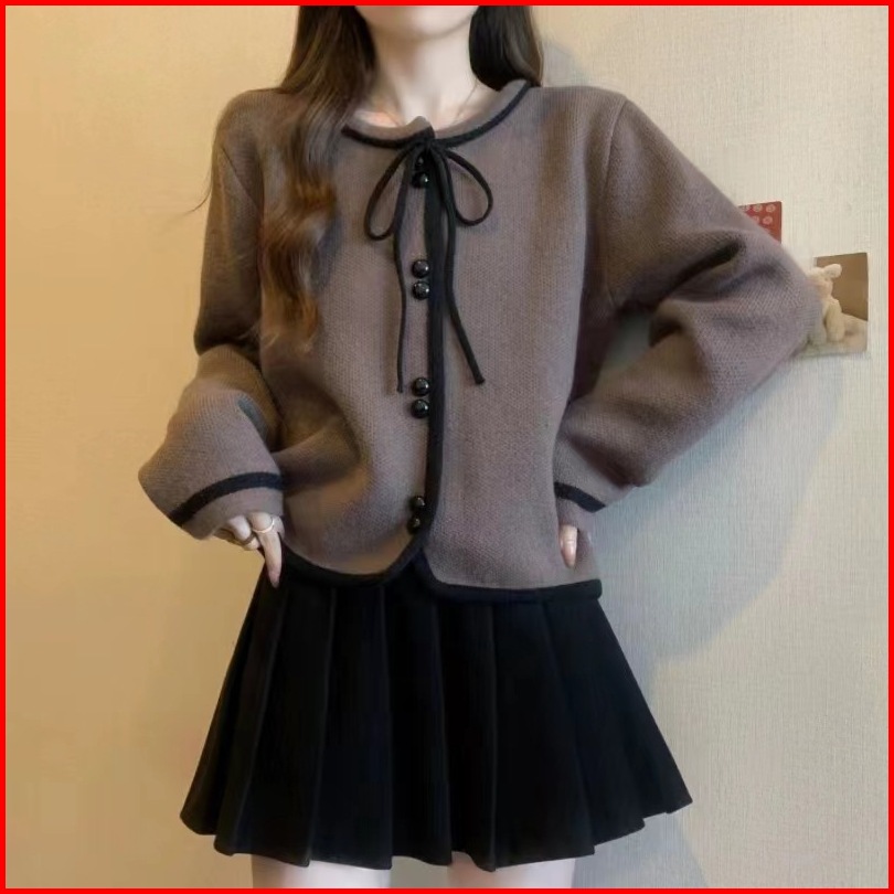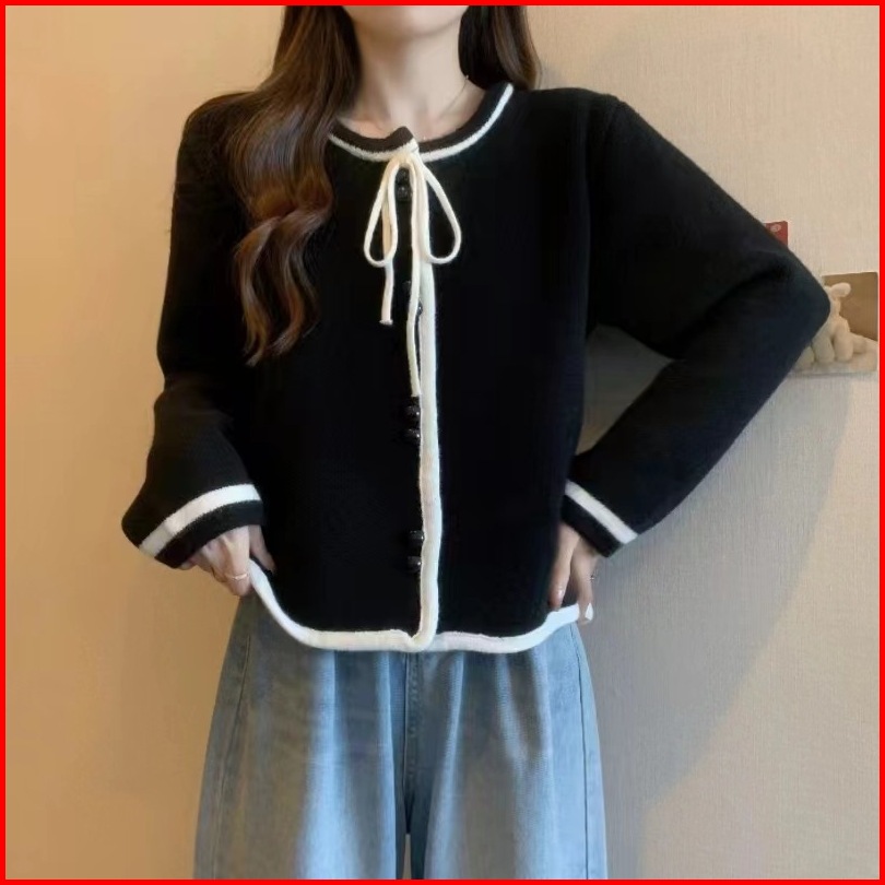 Ajw Atasan Wanita Bowtie Button On Knit Lengan Panjang Premium Rcm Cardigan Wanita Oversize List Pinggir Tali Adjust Kni