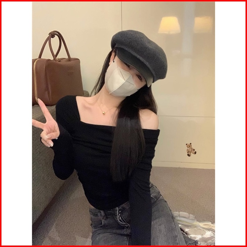 Ajw Atasan Sabrina Wanita Off Shoulder Top Kekinian Rah Blouse Lengan Panjang Atasan Bahu Terbuka Knit Premium Atasan Kn