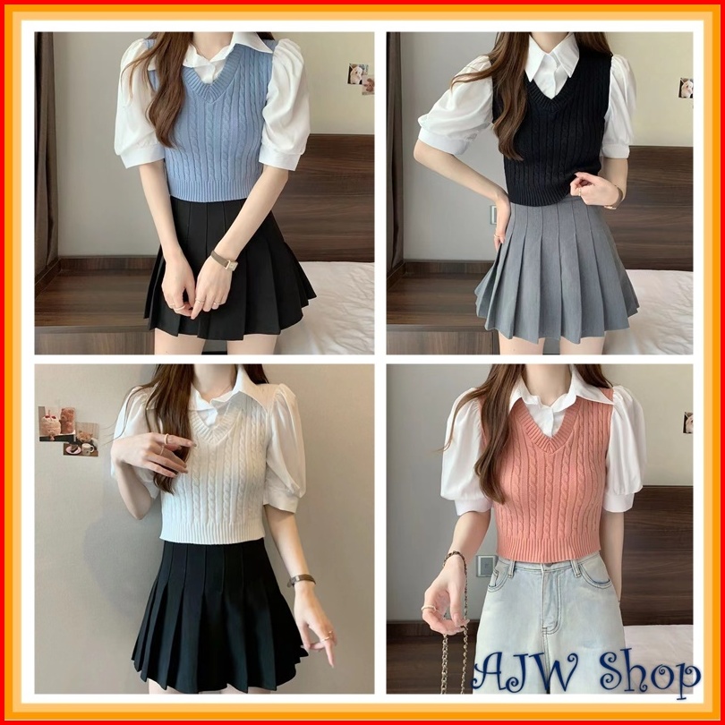 Ajw Atasan Wanita Kekinian Vest Top High School Lengan Pendek Knit Premium Hdq Atasan Wanita Vest Polo Top Highschool Kn