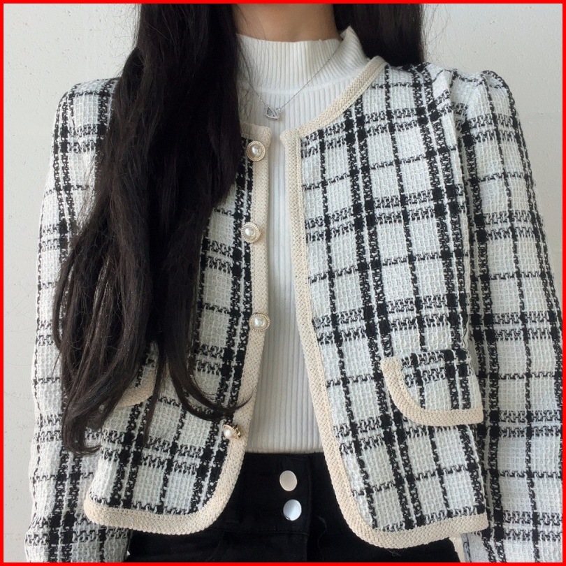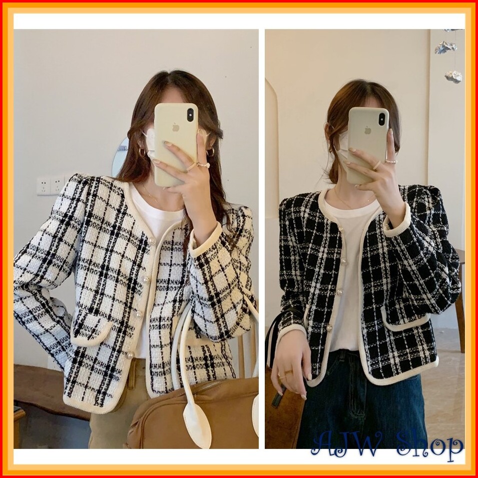 Ajw Blazer Retro Kotak Kotak Premium Tebal Wcw Outher Wanita Retro Lengan Panjang Premium Tebal Cardigan Wanita Retro Le