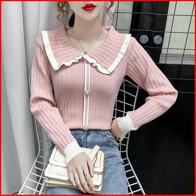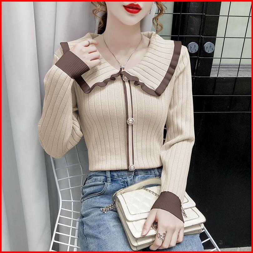 Ajw Blouse Wanita Kancing Mutiara Lengan Panjang Rajut Import Premium Rup Blouse Korean Style Wanita Rajut Kancing Mutia