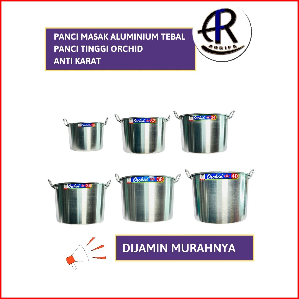 Original Orchid Panci Tinggi Panci Masak Aluminium Anti Karat Ukuran 30 - 40 Cm