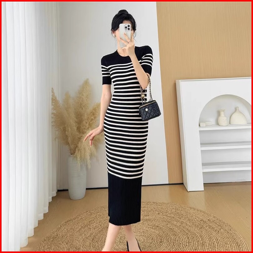Ajw Long Dress Wanita Striped Bodycon Knit Premium Sbx Dress Wanita Striped Bodycon Knit Import Premium Long Dress Panta