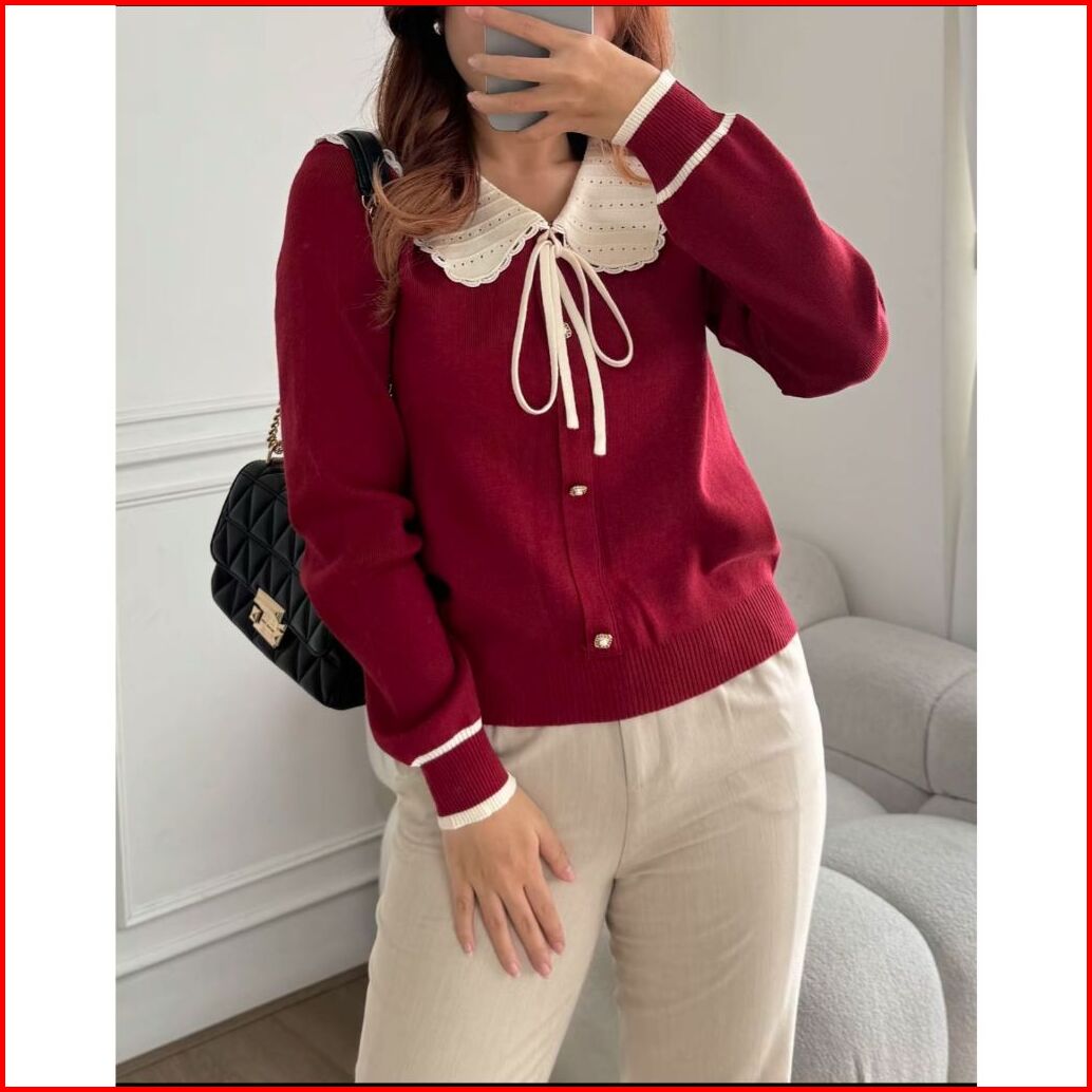 Ajw Atasan Wanita Kekinian Neck Sailor Tali Spaghetti Lengan Panjang Knit Premium Xbq Baju Atasan Wanita Terbaru Sailor
