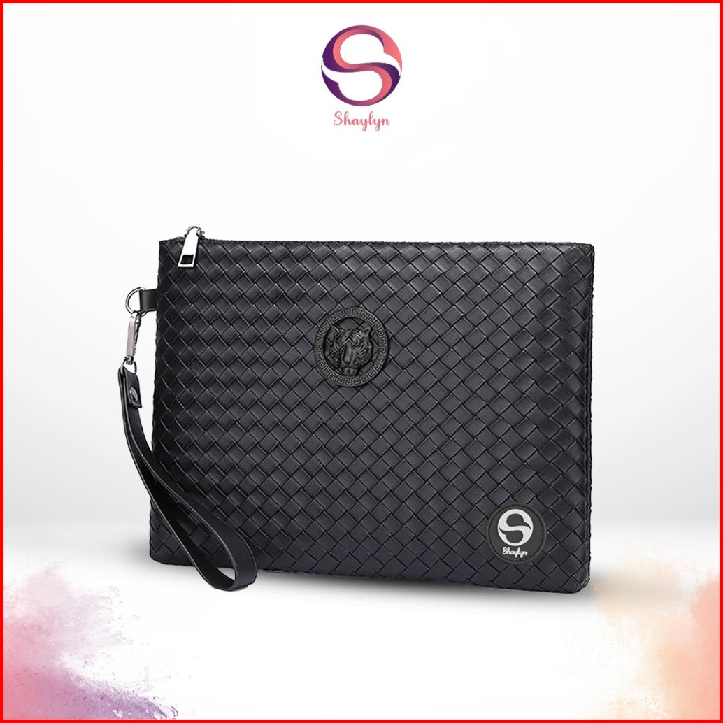 Dompet Clutch Kulit Tas Tangan Pria Motif Embos Tas Ipad Anyaman High Quality - Wy 101