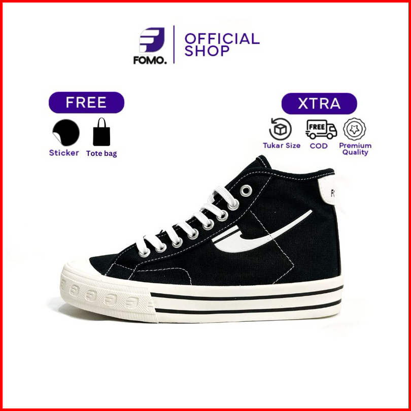 Fomo - Sepatu Astro Black White High Cut Series 36-44 Sepatu Sneakers Kasual Pria Wanita