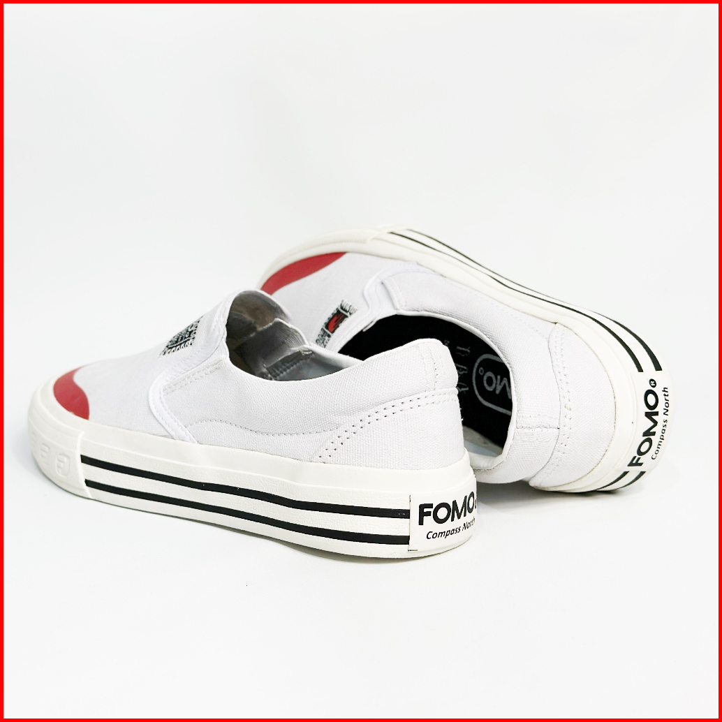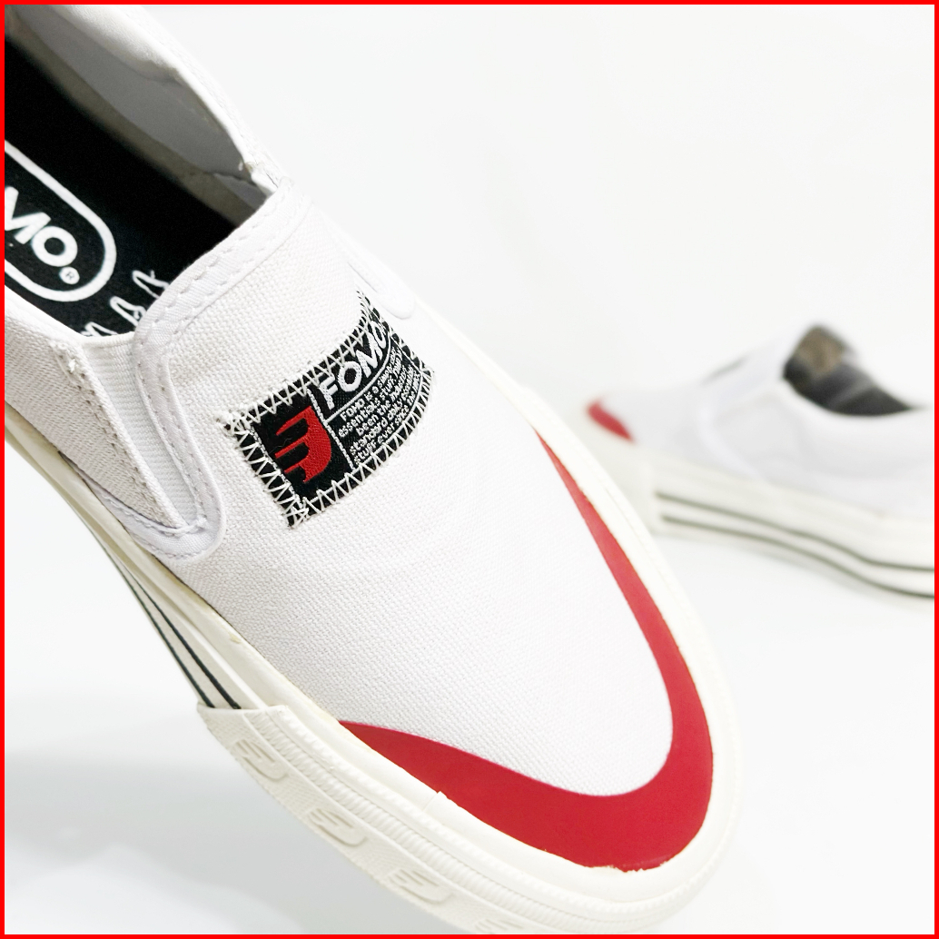 Fomo - Sepatu Slip On Remi White Red Series 36-44 Sepatu Sneakers Kasual Pria Wanita