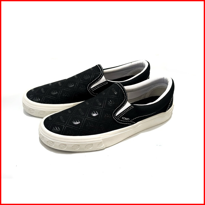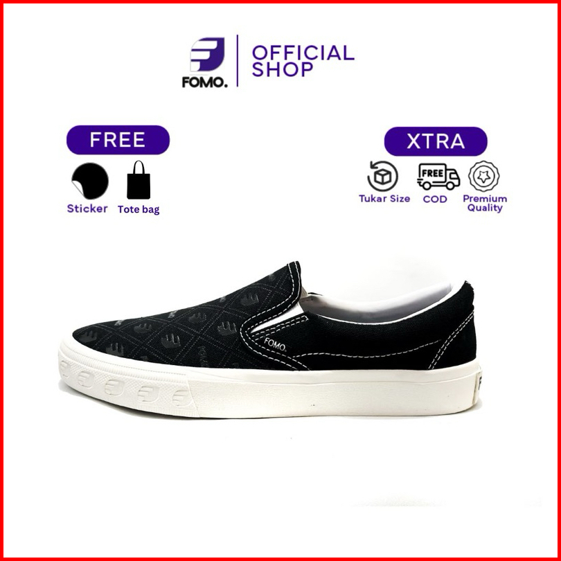 Fomo - Sepatu Slipon Monogram Black 36-43 Sepatu Sneakers Kasual Pria Wanita