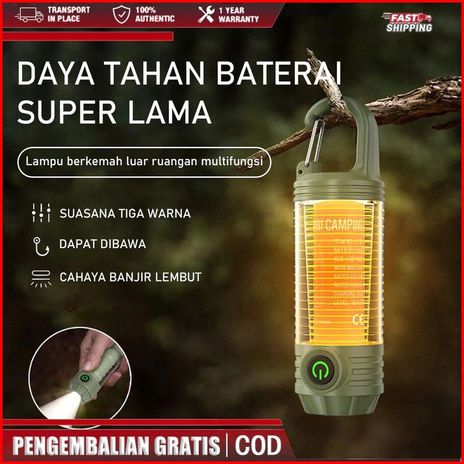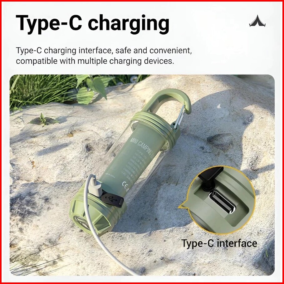Lampu Darurat Mini Type-c 6 Mode Ipx6 Anti Air Dilengkapi Karabiner Baterai Tahan Lama Senter Portable Multifungsi Untuk