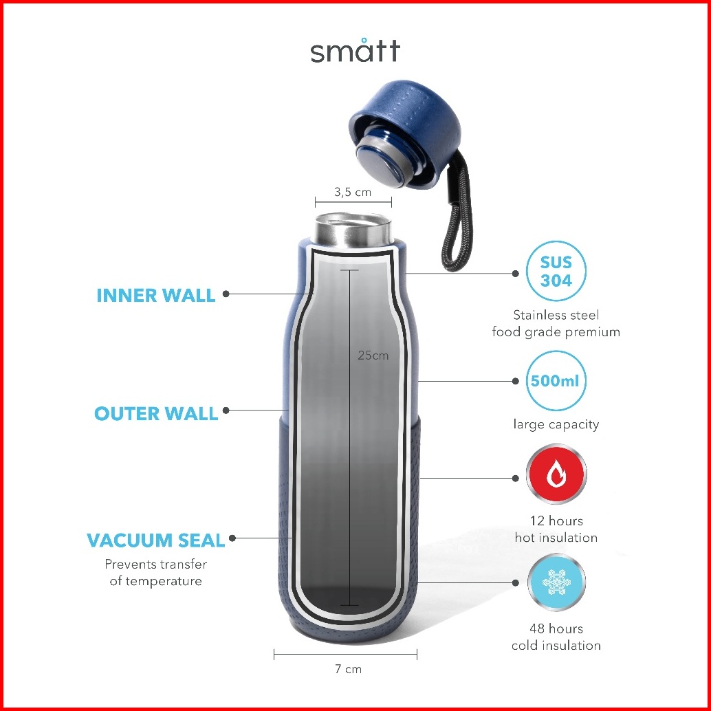 Smatt Double Insulation Tumbler - Termos Stainless Botol Minum 500ml - Burgundy