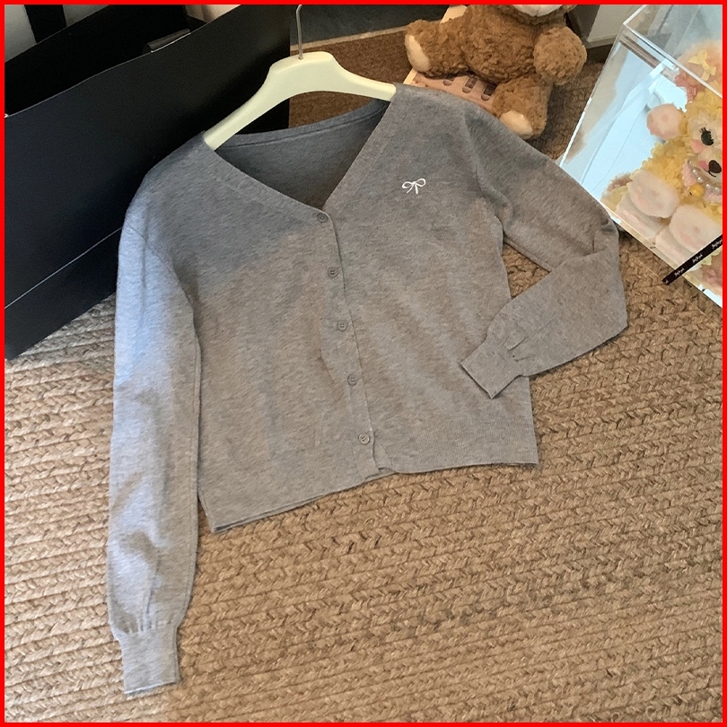 Bow Embroidered Knitted Cardigan V-neck Knitted Cardigan Cardigan Versatile Women Casual Jd