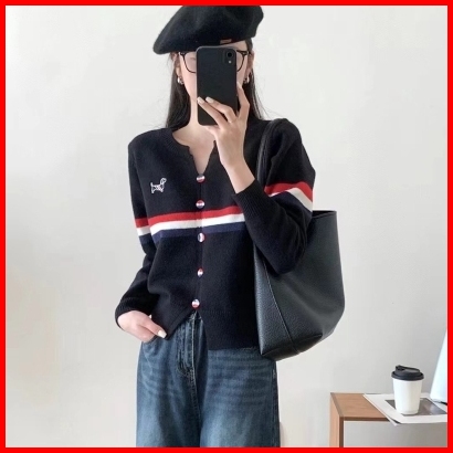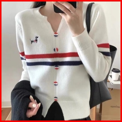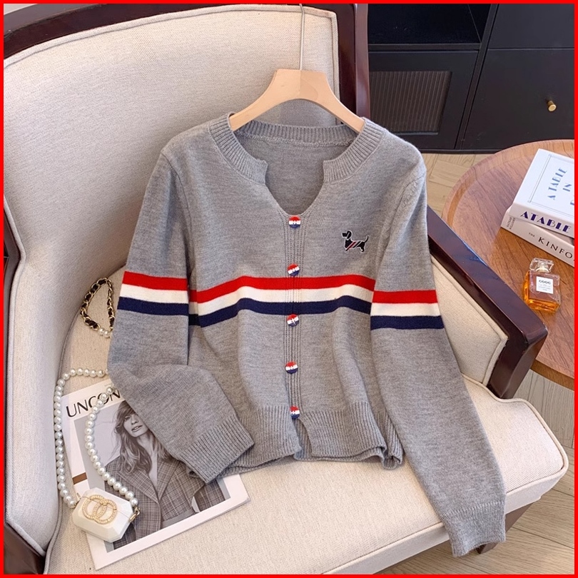 Sweater Trendi Sweater Rajut Lengan Panjang Bordir Anak Anjing Kardigan Rajut Kontras Bergaris Jd