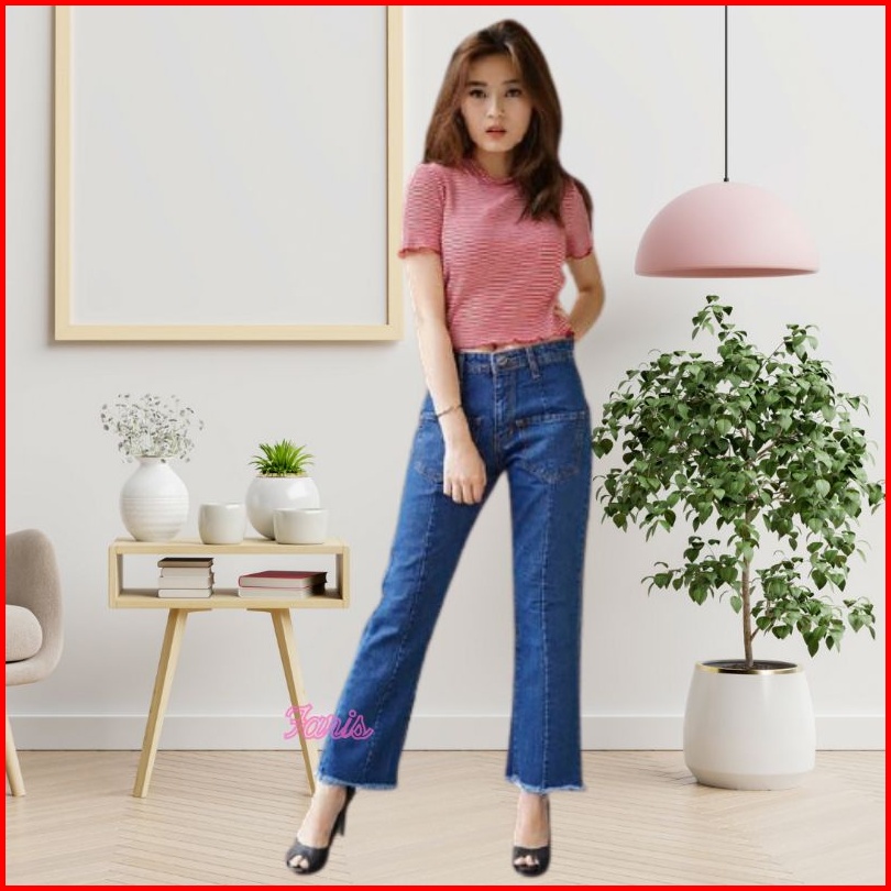 Celana Jeans Boyfriend Saku Depan Rawis Wanita Terbaru