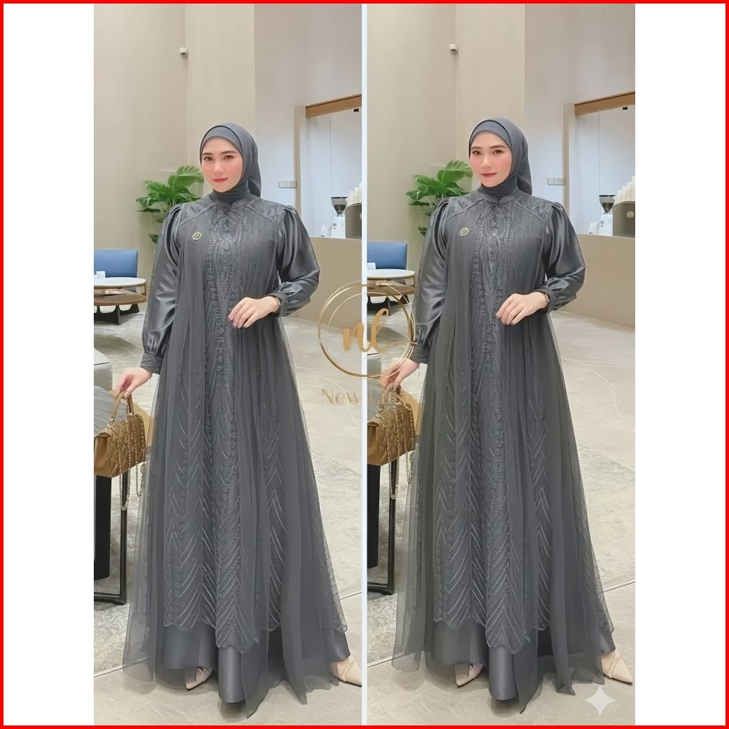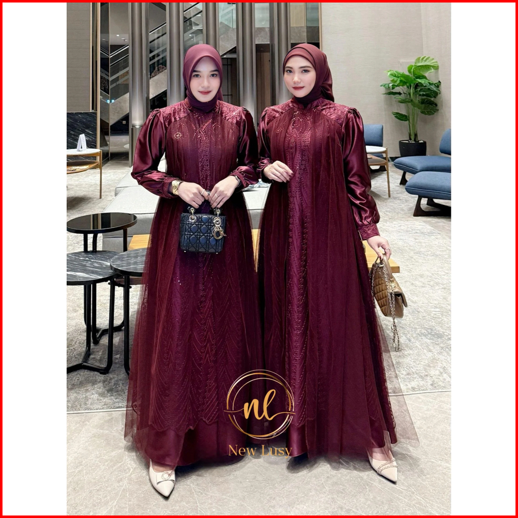 Aulia Dress Brukat Satin Velvet Premium Kombinasi Tille Sparkel Gamis Pesta Kondangan Simple Elegan